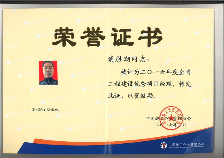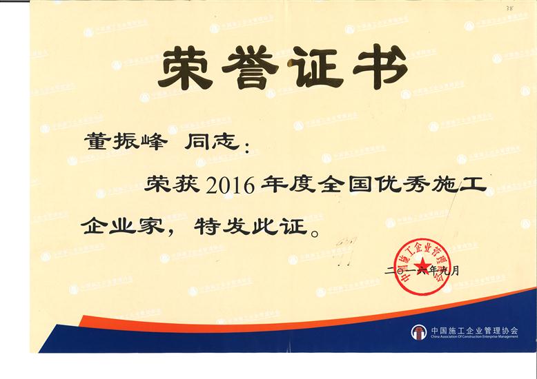 | 2016年度全國優(yōu)秀施工企業(yè)家 |