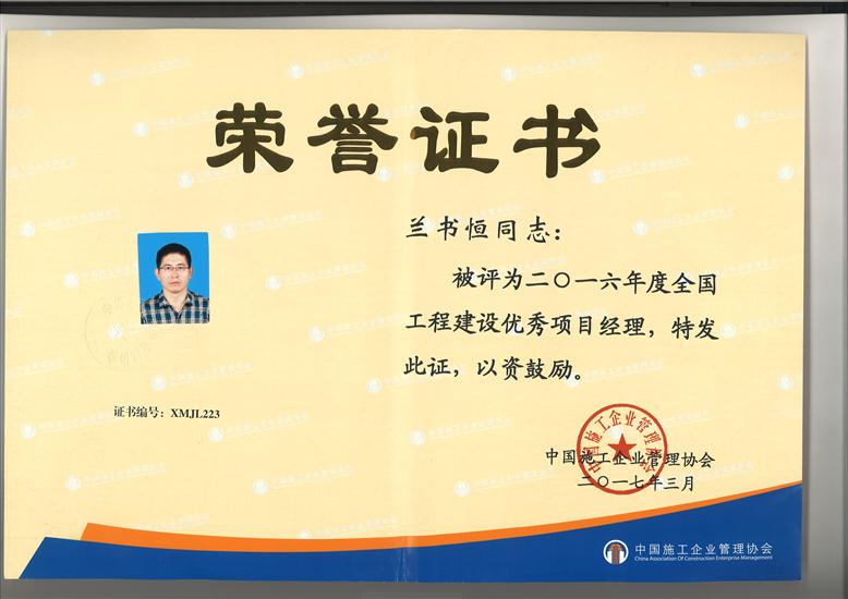 | 2015年度全國工程建設(shè)優(yōu)秀項目經(jīng)理 |