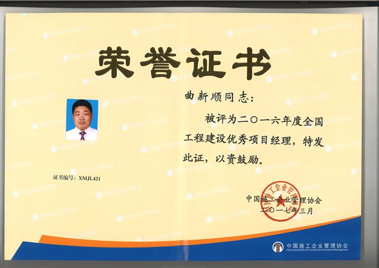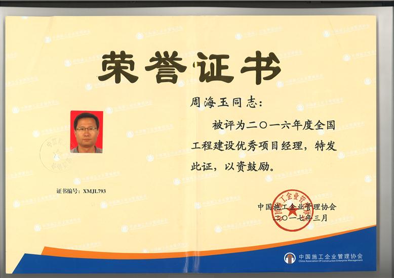 | 2016年度全國工程建設(shè)優(yōu)秀項目經(jīng)理 |
