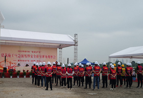 6月21日,2022年綿竹市 “安全生產(chǎn)月”建筑施工應(yīng)急演練暨安全質(zhì)量現(xiàn)場(chǎng)觀摩會(huì)在國(guó)誠(chéng)集團(tuán)有限公司承建的綿竹市第六水廠及配套管網(wǎng)建設(shè)工程施工現(xiàn)場(chǎng)隆重召開。市住建局、應(yīng)急局、質(zhì)安站、城市供水服務(wù)中心等部門領(lǐng)導(dǎo)出席會(huì)議,綿竹全市在建項(xiàng)目的施工、監(jiān)理單位負(fù)責(zé)人均到會(huì)觀摩。楊剛代表國(guó)誠(chéng)集團(tuán)有限公司就建設(shè)項(xiàng)目質(zhì)量和安全管理作交流發(fā)言,項(xiàng)目部組織模擬施工現(xiàn)場(chǎng)發(fā)生基坑坍塌事故應(yīng)急救援、工地發(fā)現(xiàn)黃碼人員應(yīng)急處置2個(gè)科目的應(yīng)急演練。