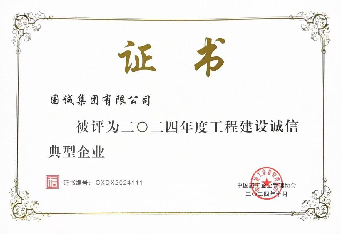 國(guó)誠(chéng)集團(tuán)榮獲“2024年度工程建設(shè)誠(chéng)信典型企業(yè)”稱號(hào)!