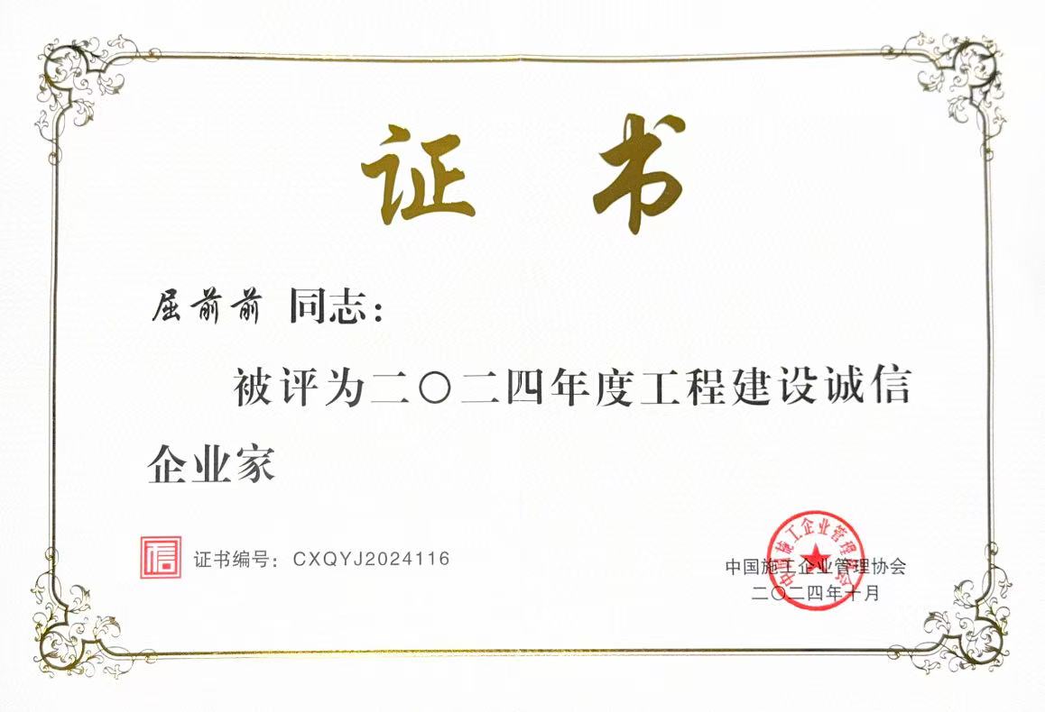 副總經(jīng)理屈前前被評(píng)為“2024年度工程建設(shè)誠(chéng)信企業(yè)家”!