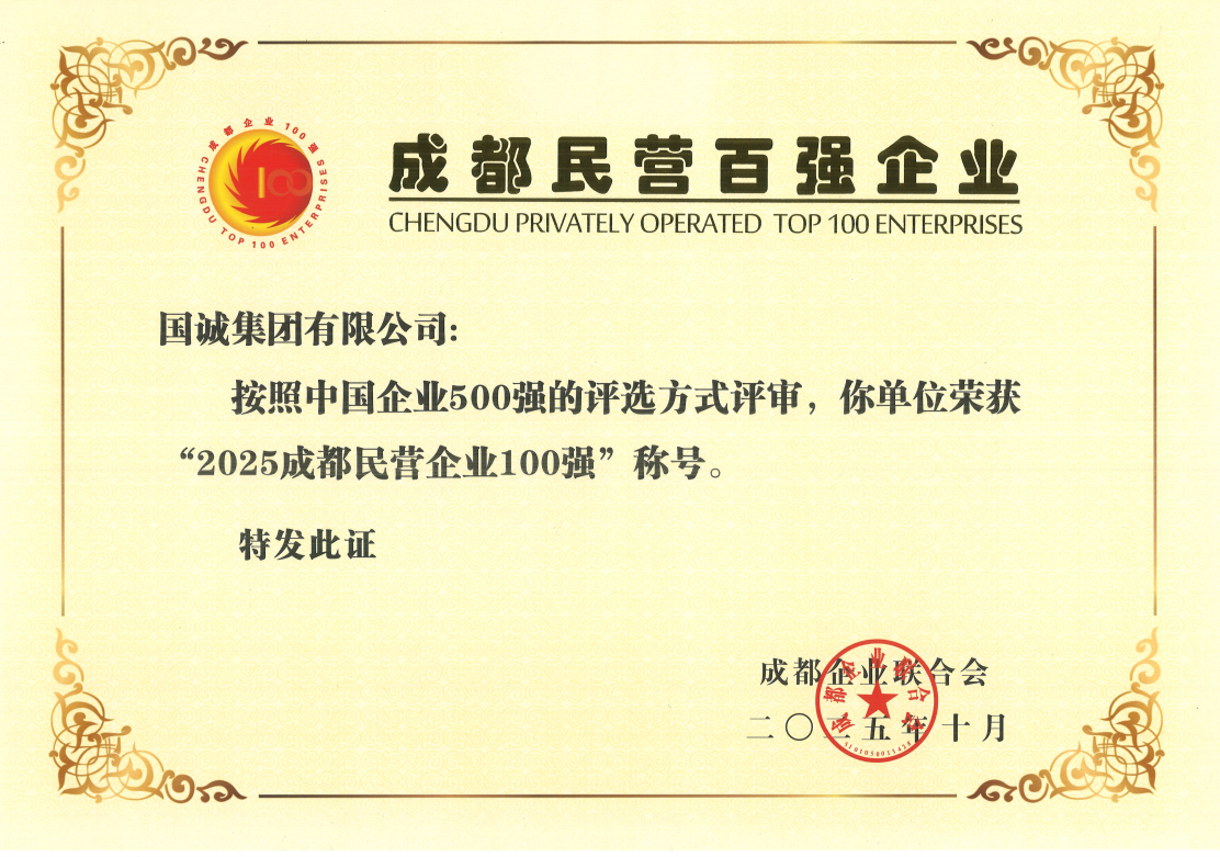 國(guó)誠(chéng)集團(tuán)榮膺“2025成都民營(yíng)企業(yè)100強(qiáng)”