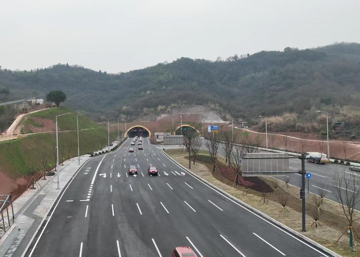 作為西部(重慶)科學(xué)城核心區(qū)"六橫六縱"骨架網(wǎng)的關(guān)鍵組成部分,高騰大道(三期)工程承載著貫通區(qū)域交通、助力科學(xué)城發(fā)展的重要使命。項(xiàng)目位于科學(xué)城金鳳含谷規(guī)劃區(qū)內(nèi),向東穿越寨山坪余脈后銜接高騰大道二期,全長1520米,其中包含西部(重慶)科學(xué)城首個暗挖完工的雙向八車道隧道——鳳棲湖隧道,隧道單洞最長達(dá)1078米,標(biāo)準(zhǔn)路幅寬度44米,設(shè)計行車速度60千米/小時,總投資達(dá)4.4億元,是集團(tuán)公司在復(fù)雜市政工程領(lǐng)域的里程碑式項(xiàng)目。工程于2023年8月實(shí)現(xiàn)全線通車,不僅打通了天然山體屏障,更構(gòu)建起金鳳片區(qū)與含谷片區(qū)的快速交通廊道,使兩地往來通行時間縮減15分鐘以上,為金鳳實(shí)驗(yàn)室等重點(diǎn)科研平臺搭建了東部聯(lián)系的快捷通道,極大提升了科學(xué)城核心區(qū)的交通通達(dá)性。